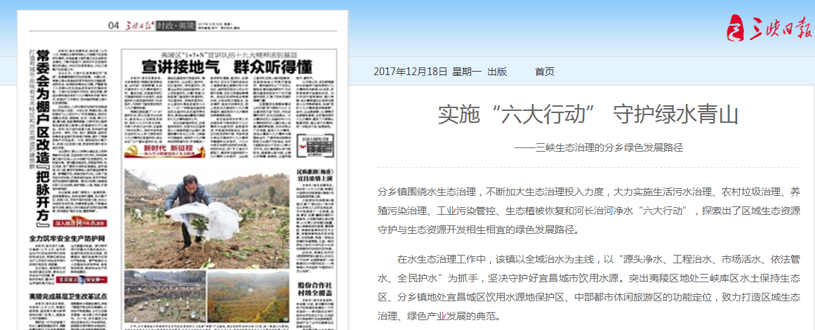 同时,夷陵区把建设长江三峡生态屏障坝区库首第一区置于美丽中国建设的大局之中,全面推进三峡生态经济合作区生态治理“宜昌试验”夷陵实施,从立法、行政改革、资本市场、产业转型、基础设施、生态公民意识六个层面推进生态治理攻坚,筑牢三峡生态屏障。