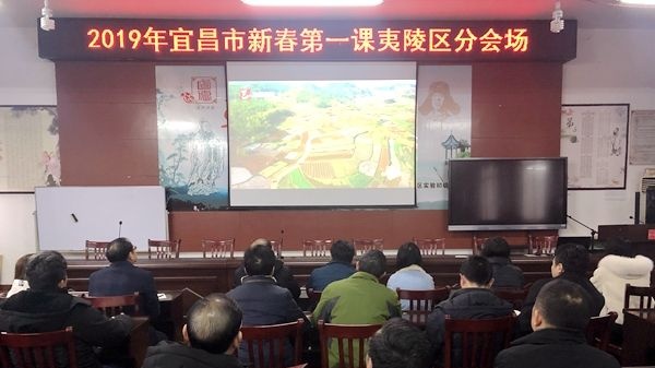 2019春季学期开学第一天,宜昌市上海中学学生、教师和部分家长,集中收看“宜昌市新春第一课”。