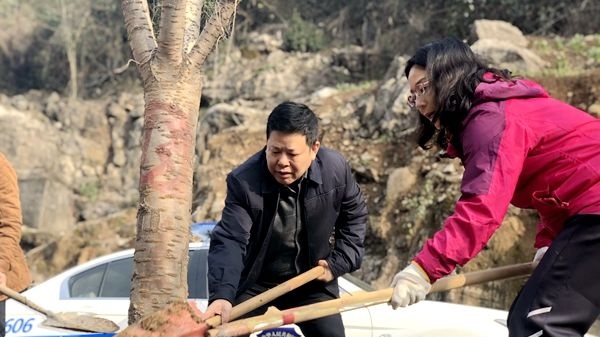 今天上午,夷陵区150多名干部群众在宜黄一级路宜巴高速黄花入口处集中开展春季义务植树活动,掀起2019年度夷陵区全域生态复绿和长江两岸造林绿化新高潮, 加快推进花园城市建设,为三峡生态屏障再添新绿 。 (夷陵区融媒体中心记者谭明龙 毕仁科 编辑卢薇)