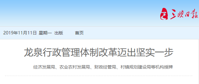 近年来,龙泉镇坚持围绕建设现代化城市的总体目标,坚持党政“一把手”抓改革不变,“区官治镇”格局不变,目标引领不变,着力推动审批职能、执法职能、服务网格下沉。在组织体系上实现了职能配置、机构设置、编制分配统筹,有效实现了财政支持政策倾斜,土地保障政策倾斜,项目扶持力度倾斜,有力促进了全镇经济社会发展,实现了由“一个小镇到一座新城”的华丽转身,并跻身全国重点镇行列。