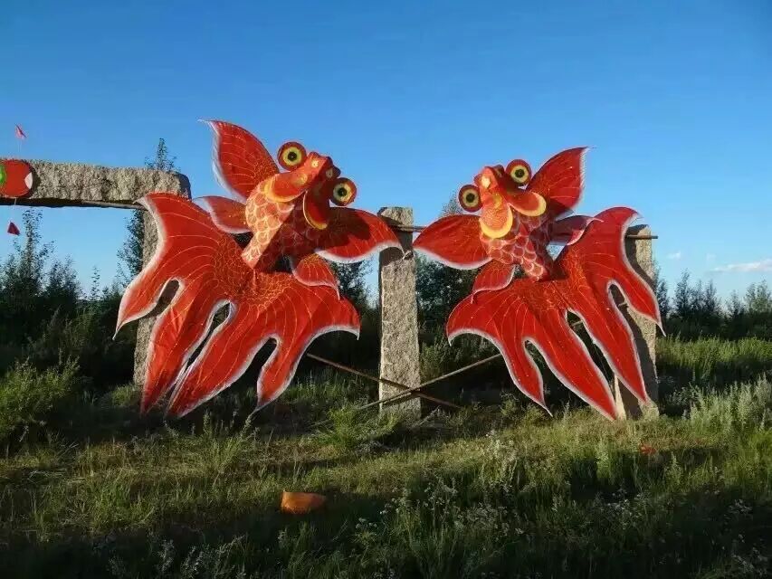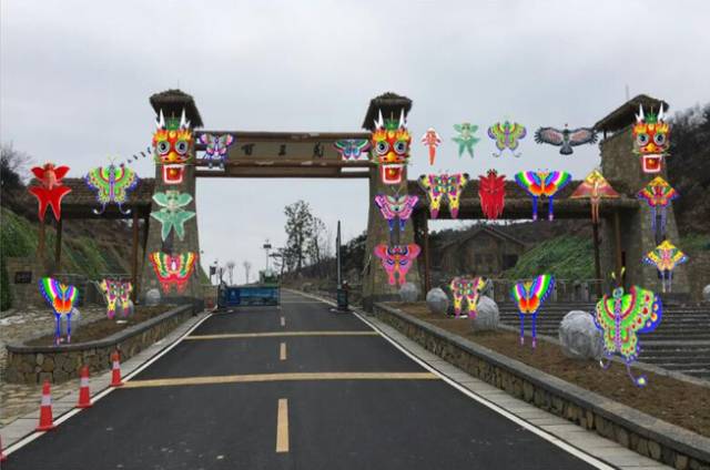 用龙头蜈蚣风筝和大型凤凰风筝为主要造型,再配上各式小型凤凰、鸟类风筝,寓意百里荒在将来前景似锦,有着美好未来。同时,也寓意来参观的游客生活、事业、家庭、爱情蒸蒸日上、顺风顺水、万事如意!