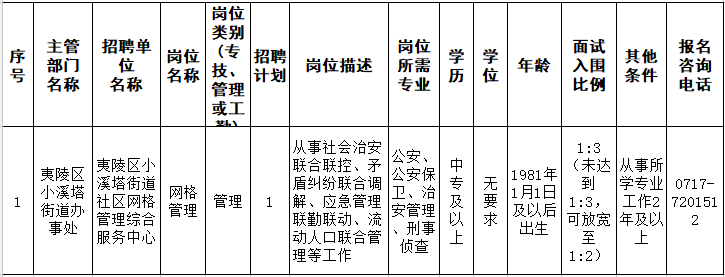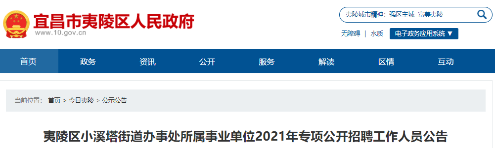 夷陵区小溪塔街道办事处招聘工作人员