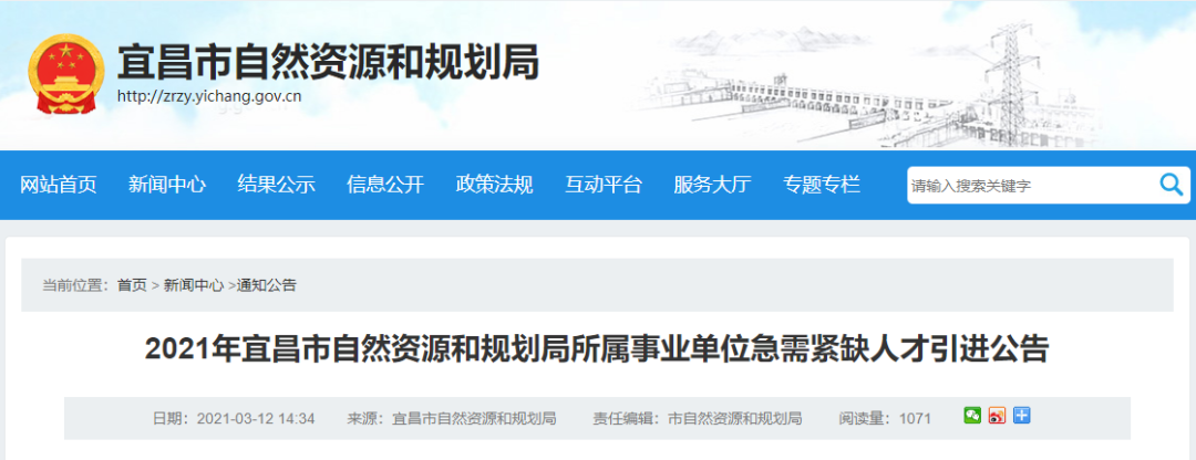 宜昌市自然资源和规划局所属事业单位急需紧缺人才引进
