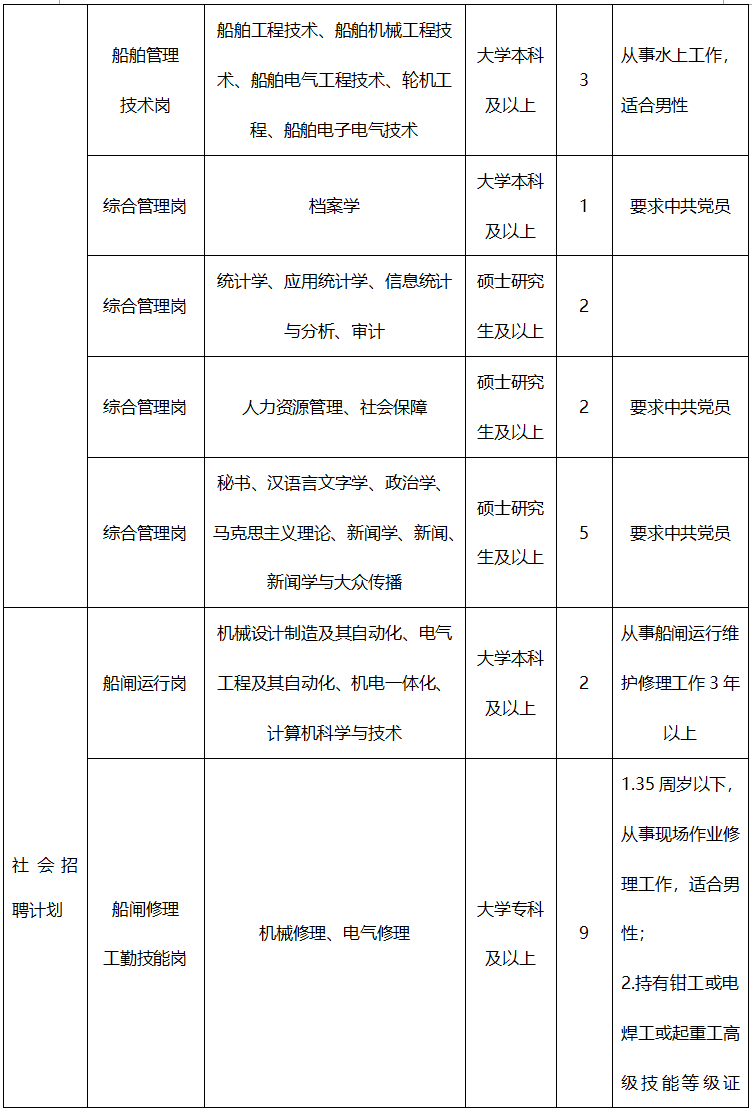 长江三峡通航管理局事业编制人员招聘