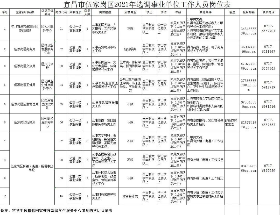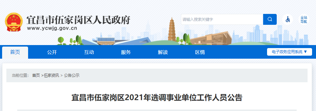 为提供人力保障、人才支撑,经中共宜昌市伍家岗区委、宜昌市伍家岗区人民政府研究决定,拟采取选调方式为伍家岗区部分事业单位补充工作人员。