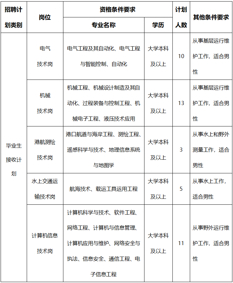 三峡局现公开招聘事业编制工作人员66名,其中接收毕业生55名,社会招聘11名。