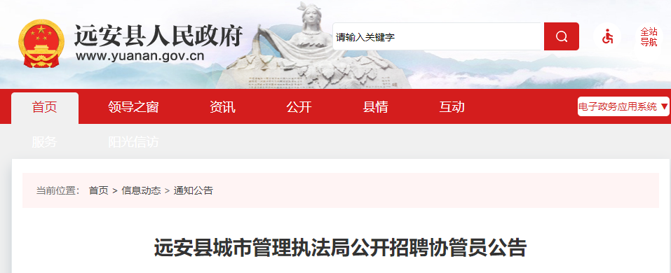 远安县城市管理执法局公开招聘协管员