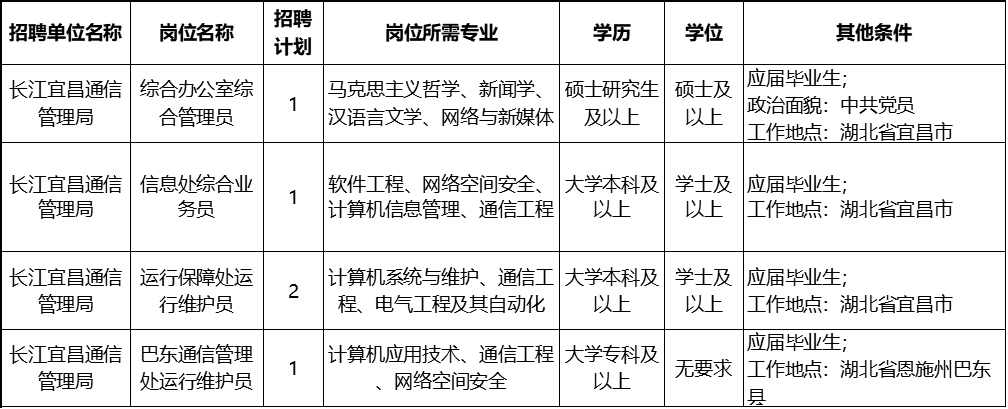 长江通信管理局公开招聘