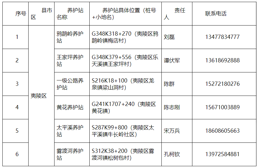 夷陵区国省干线低温雨雪冰冻应急保畅责任表
